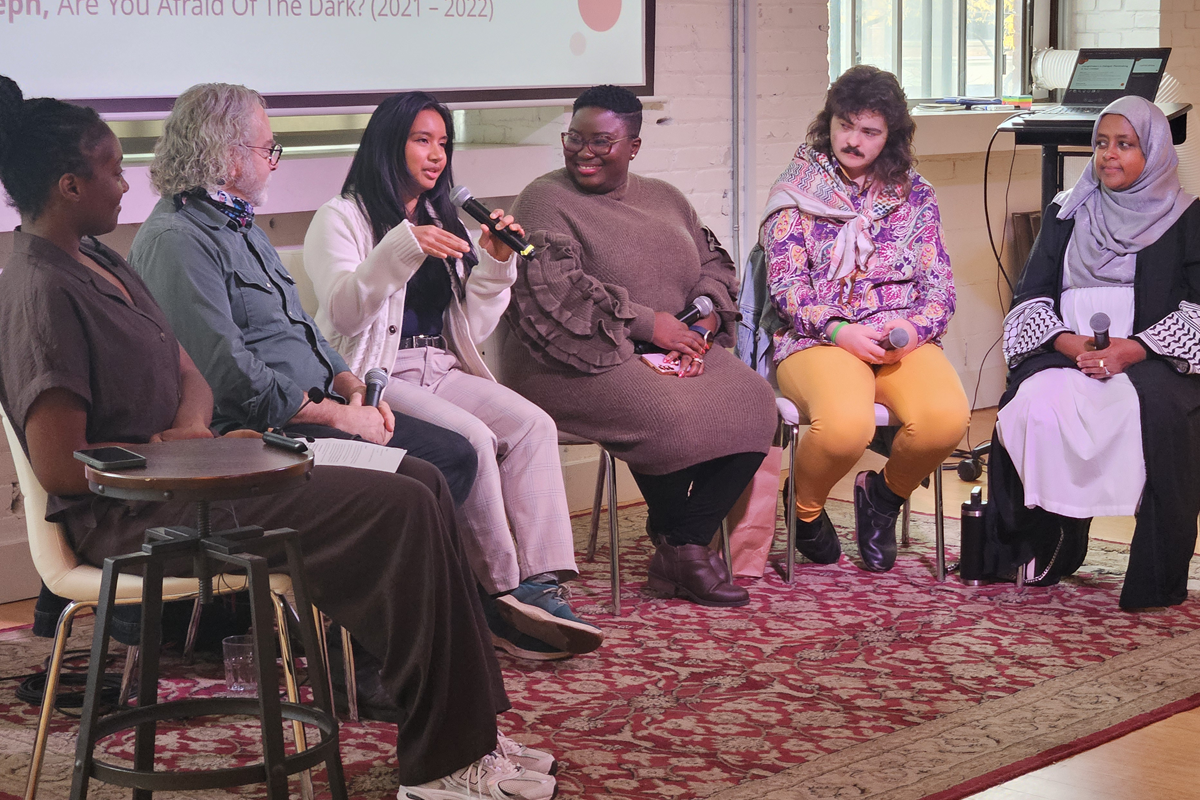 Day 2 of Studio culminated with Changemakers in Dialogue: Placemaking in Your Context. The panel and workshop, hosted by past changemaker and 8 80 Cities Project Manager Tennesha Joseph, brought together OCC Alumni Mabe Kyle, Dokun Nochirionye, David Sheffield, Armi De Francia, and Sureya Ibrahim, who shared their experiences as Ontario Community Changemakers. Afterwards, Changemakers were vulnerable with one another about their excitement and fears about making change, and how their lived experiences and geographic contexts might shape their experience over the next 12 months as they bring their projects to life.