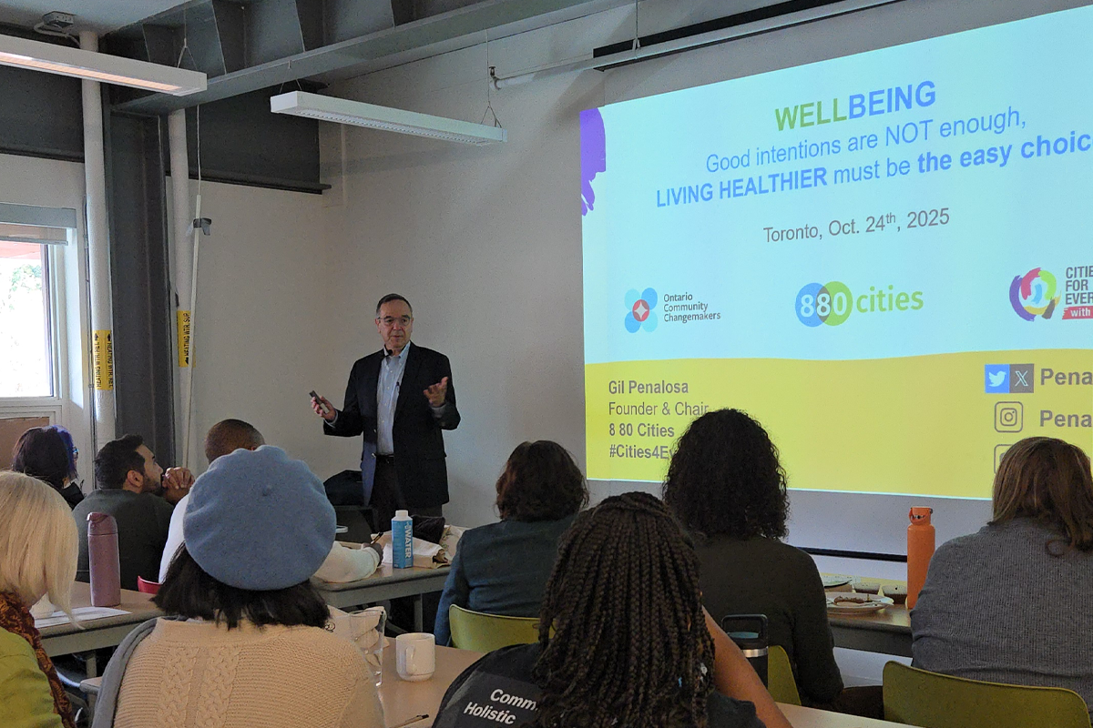 Then, 8 80 Cities Founder Gil Penalosa shared his vision of Cities for Everyone, highlighting the exceptional capacity for change within communities of all sizes and at all scales – neighbourhoods, small towns, as well as mid-size suburban and metropolitan cities.